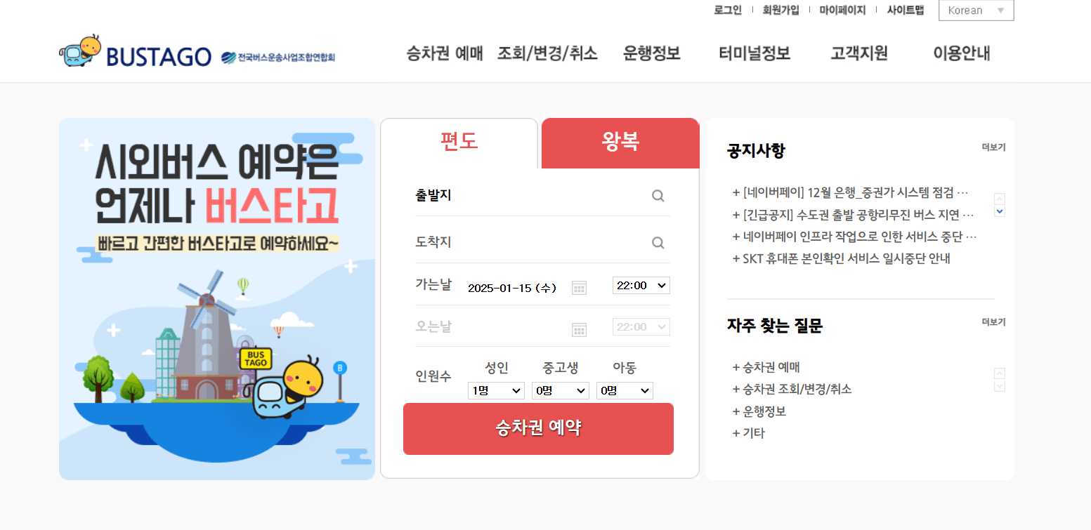 1. 버스예약 사이트에 접속합니다.