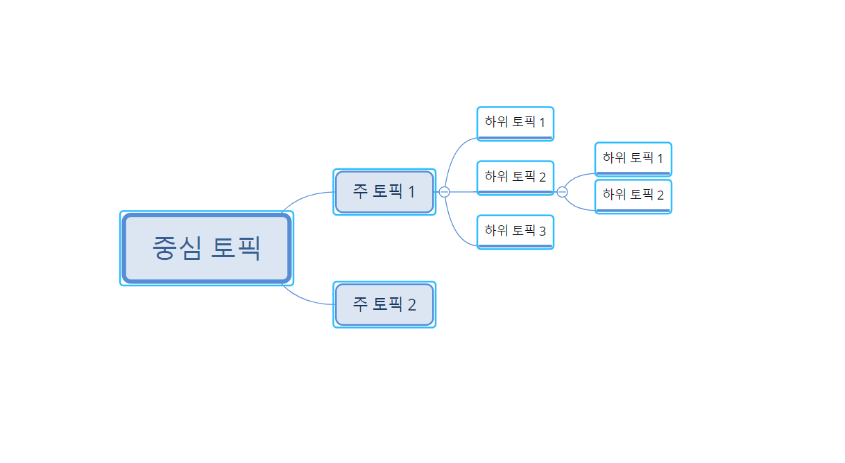 - 핵심 키워드 중심으로 작성하자: 모든 문장을 적기보다는 중요한 핵심 키워드만 적어 가지를 확장하는 것이 효율적입니다.