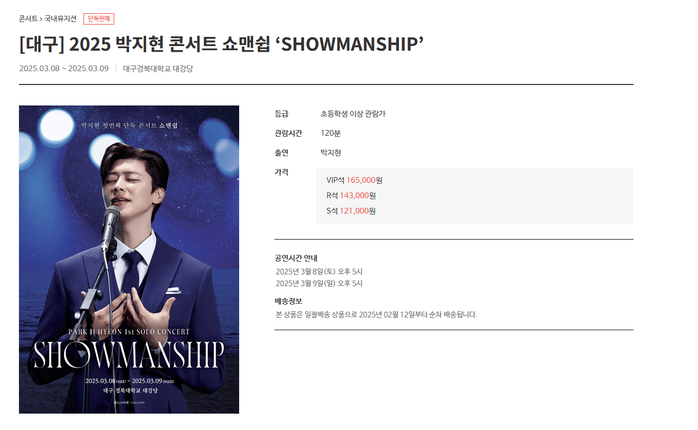 - 티켓 예매 시작일: 2025년 1월 14일(화) 오후 2시