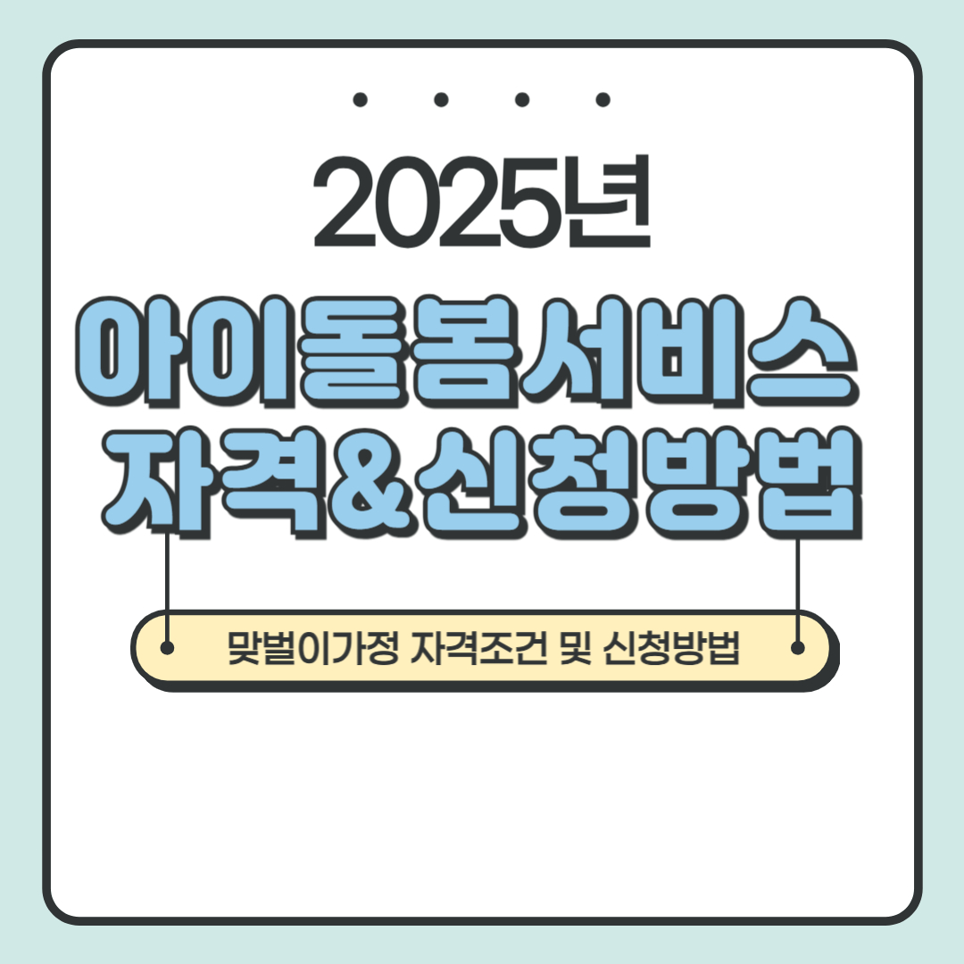 아이돌봄서비스는 맞벌이 가정이나 육아가 어려운 부모를 위해 전문적인 돌봄 서비스를 제공하는 제도입니다. 정부 지원을 받을 수 있는 경우도 있어 많은 부모님들이 관심을 갖고 있습니다.