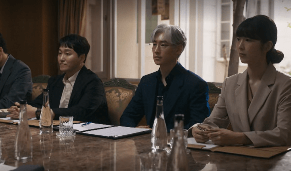 특히 인상적인 장면은 윤주노가 반대파 임원들 앞에서 자신의 비전을 설명하는 회의실 시퀀스입니다. 그는 "산인 건설을 매각하는 것은 그룹 전체를 살리기 위한 불가피한 선택"이라고 주장하며, 단기적 손실보다 장기적 생존을 강조합니다.